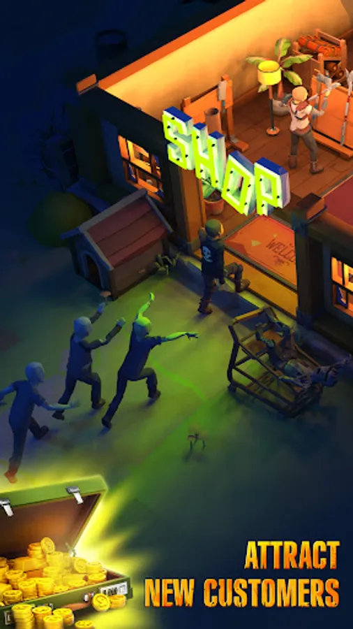 Install Zombie Shop FOR FREE and start growing your business right now! Design and produce, buy and sell, invest and personalize—anything to thrive in this zombie-ridden post-apocalyptic adventure of a world!