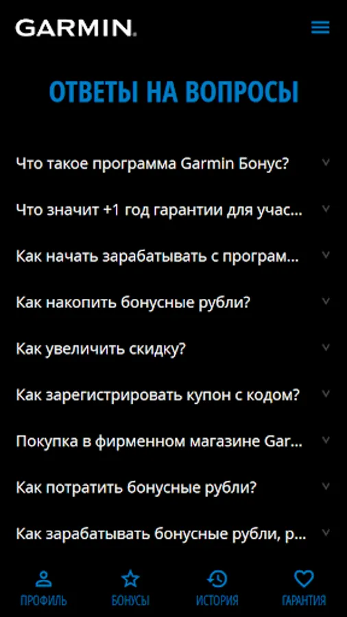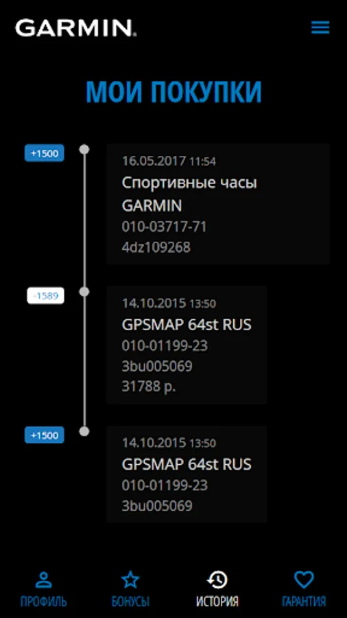 Garmin Bonus - a program to encourage our favorite customers, which operates in all the Garmin brand stores. Immediately after registration you will receive a 5% discount. It can easily be expanded by actively participating in the program and accumulate points. In addition, participants of the program is available free to get one-year warranty on all devices.