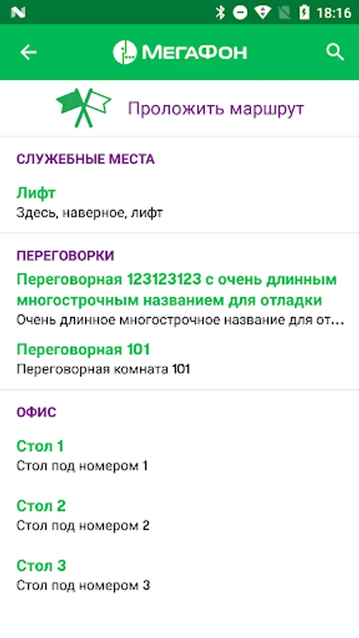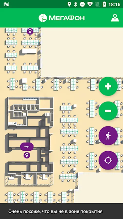 Appendix "Office" shows the possibilities of positioning systems in premises, built in almost any modern mobile phone, on the example of a pilot zone, located on the 10 floor of the central office. Navigation through the room is built using the fixed network beacons transmitting signals bluetooth low energy. Annex on the strength of these signals using trilateration algorithm, as well as other available sources of data, for example, the testimony of the built-in accelerometer in the phone determines the location of the phone in real time.