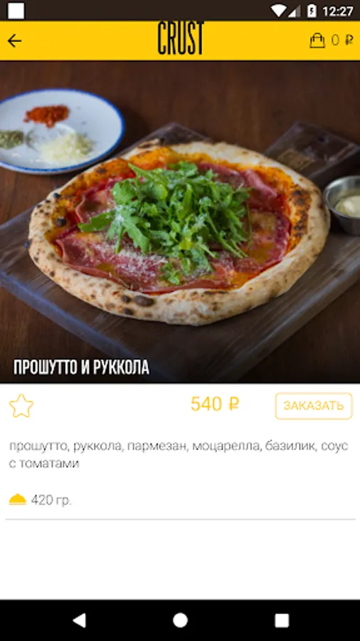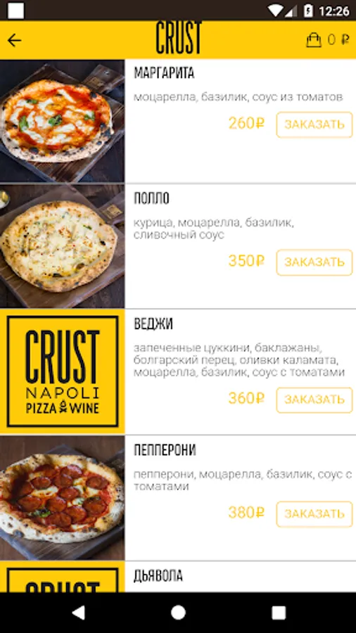 The application of the restaurant "CRUST PIZZA & WINE" allows you to arrange the delivery of the order home or to the office. With this application, you can place an order in 3 clicks. Save personal information so that you do not waste time re-entering it into the order form. Add favorite blues to your favorites and follow the history of your orders!