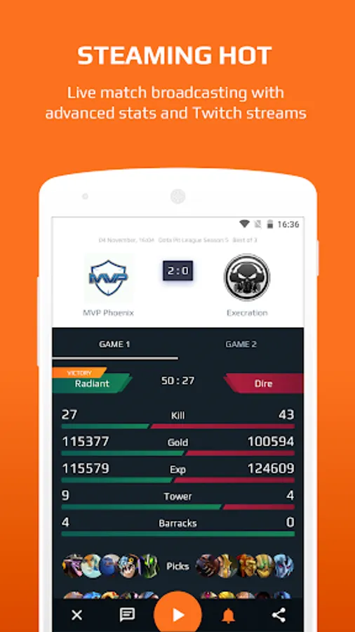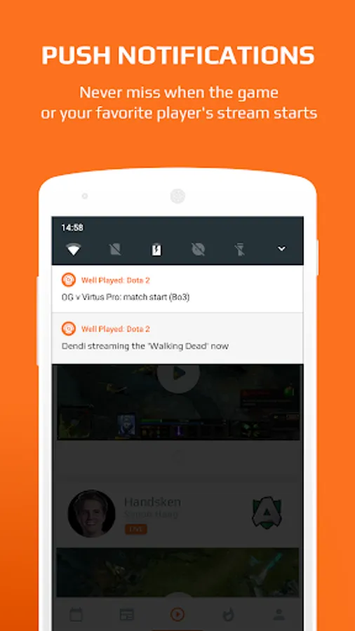 • Push notifications about selected matches, breaking news and your favourite players’ streams