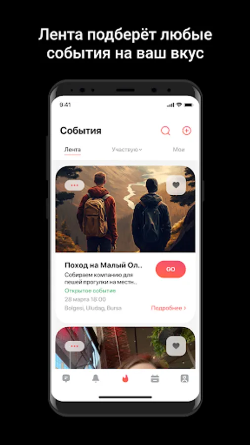 The I Go app is a convenient way to create and find events on any topic. With smart search, you can quickly find the event you are interested in and join it. Various event themes are available in the application, from science and business to sex and travel. You can create private, public or private events and invite any number of participants.