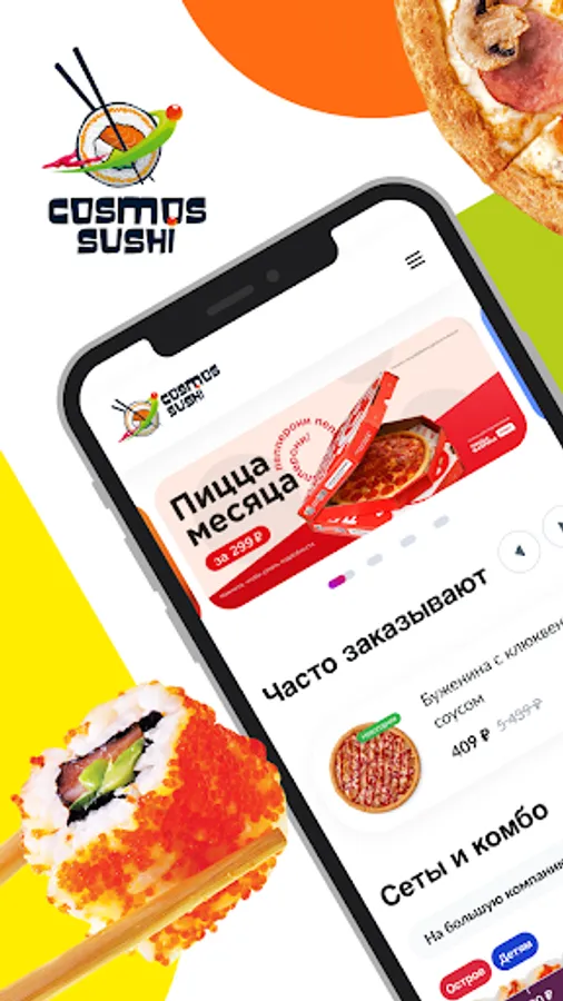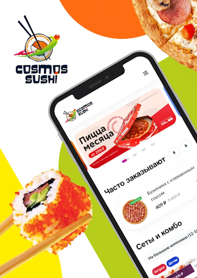 Cosmos Sushi is a chain of Japanese cuisine cafes with fast delivery.