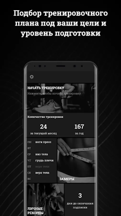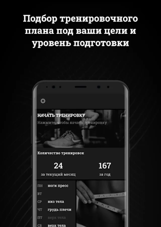 При отсутствие возможности/желания тренироваться с тренером в клубе, приложение составит для вас персональный тренировочный план в зависимости от: