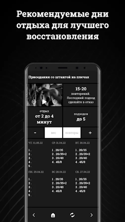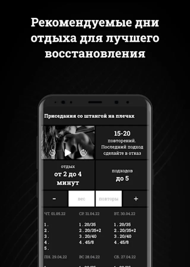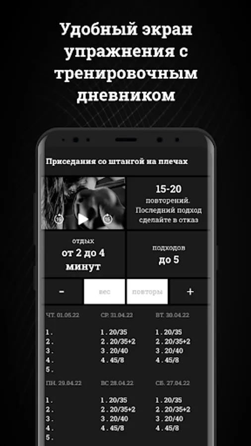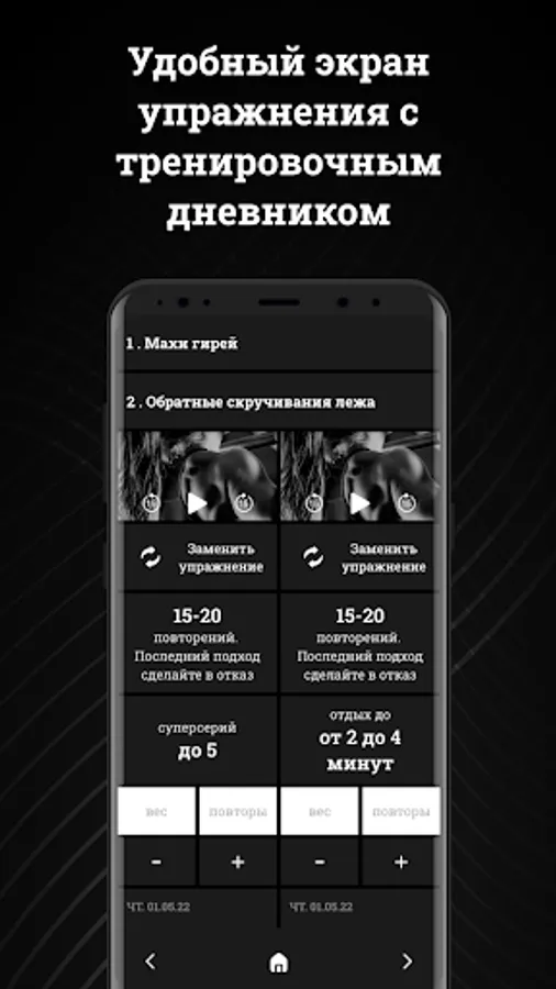 Мгновенный доступ к записям рабочих весов к каждому упражнению