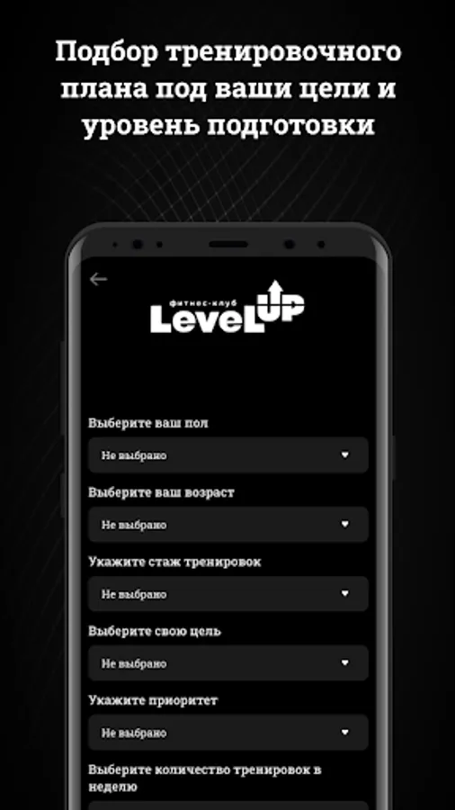 Локальное спортивное приложение для составления персонального тренировочного плана для вас в фитнес клубе LEVEL UP в Красноярске.