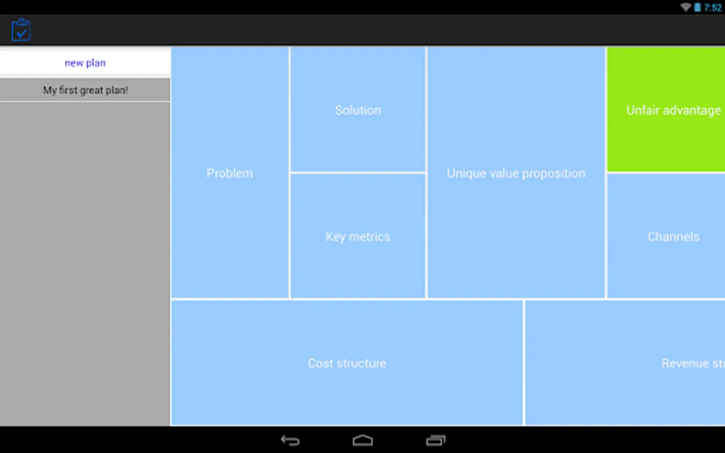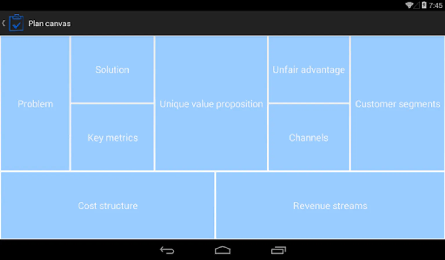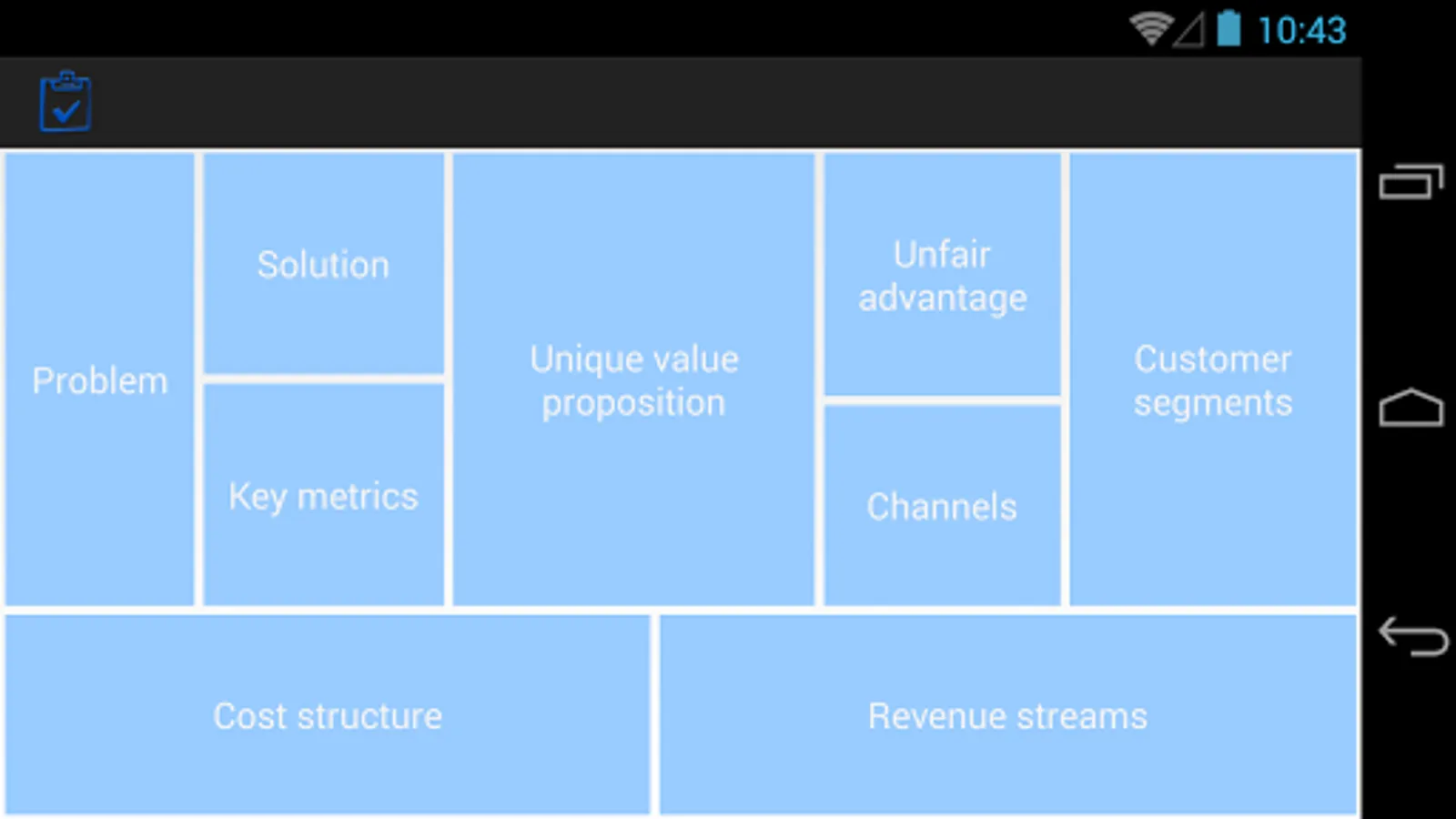 To shorten the time for first idea documentation, Alex Osterwalder came up with A4 table which we present in this app. Filling up the table, using practical and helpful hints, you will go through all important steps of a real business plan.