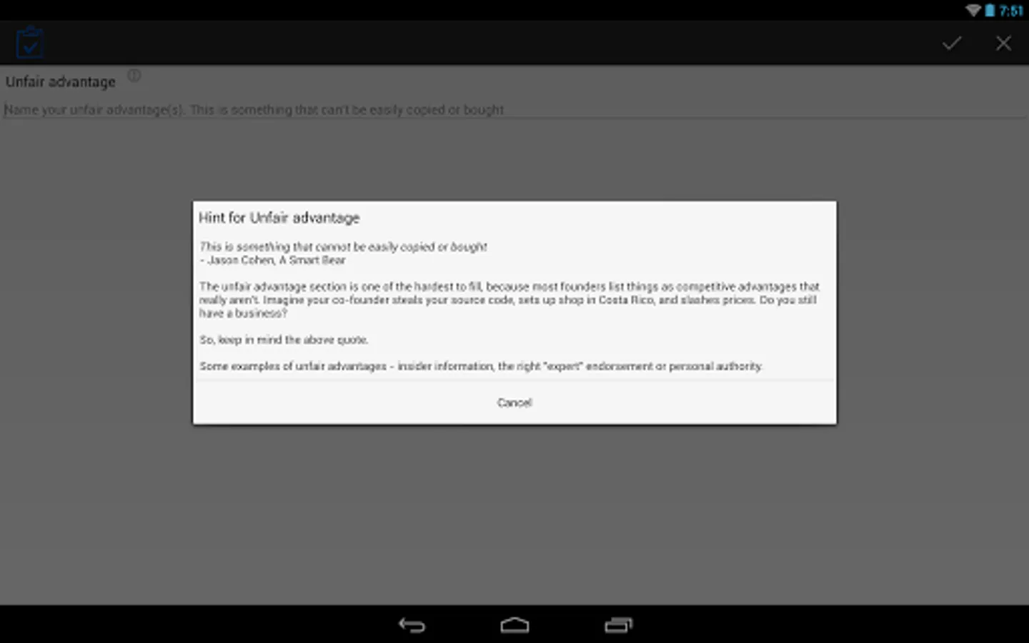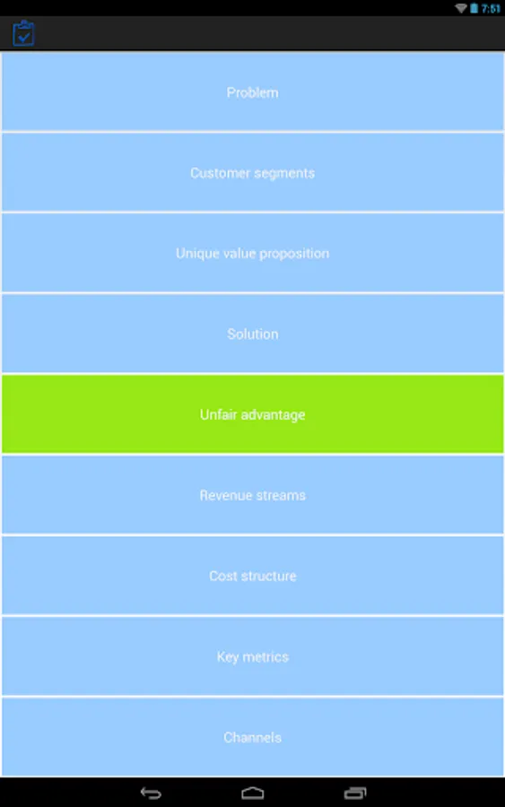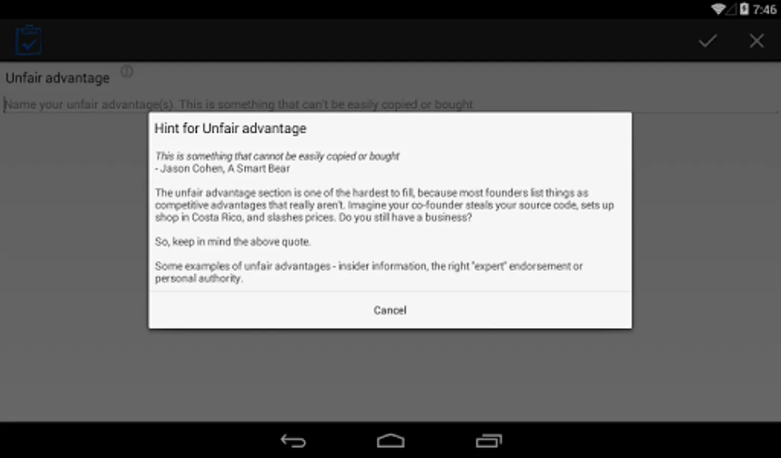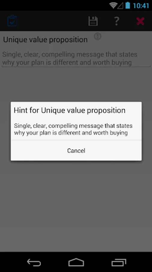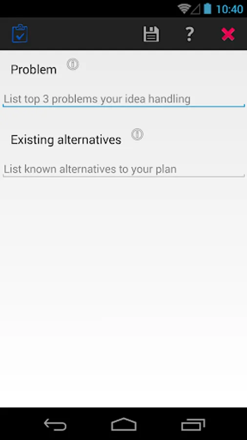 To shorten the time for first idea documentation, Alex Osterwalder came up with A4 table which we present in this app. Filling up the table, using practical and helpful hints, you will go through all important steps of a real business plan.
