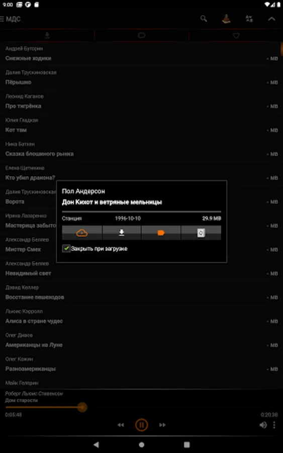 “Model for Assembly” (abbreviated as MDS) is a cult Russian radio program that reads science fiction books by a professional reader to well-chosen music. One of the most famous radio shows in the segment of author's programs. The application itself is a catalog of the largest archive mds-club.ru. Designed with love by Model To Build fans.