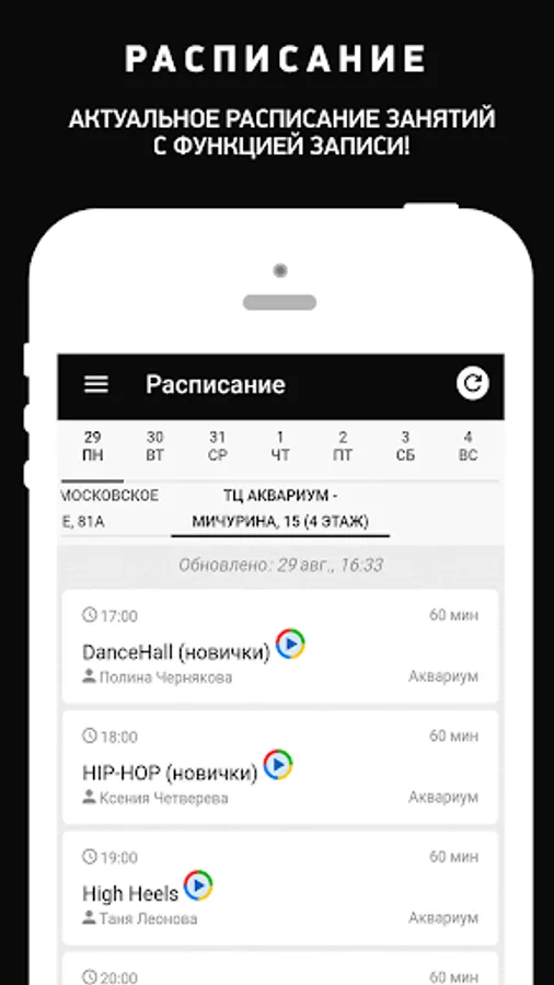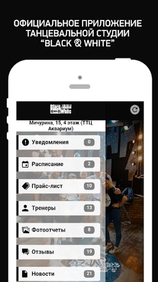 The app will allow you to keep abreast of the news studio «Black & White» (Black and White, Black End Vait), always carry a current class schedule. You will get the opportunity to write a review for the studio, as well as view Photos from the event!
