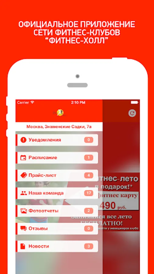 The app will allow you to keep abreast of news network of fitness clubs "Fitness Hall" always carry a current schedule of group classes. You will get the opportunity to write a review about the studio, as well as view Photos from the event!
