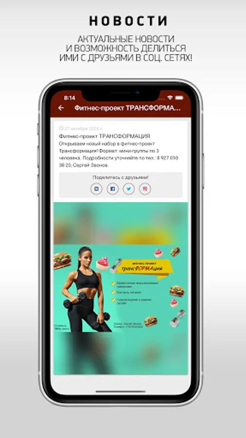 The application will allow you to keep abreast of the news of the club "Grace", always carry a current schedule of group classes. You will get the opportunity to write a review for the club, as well as view Photos from the event!