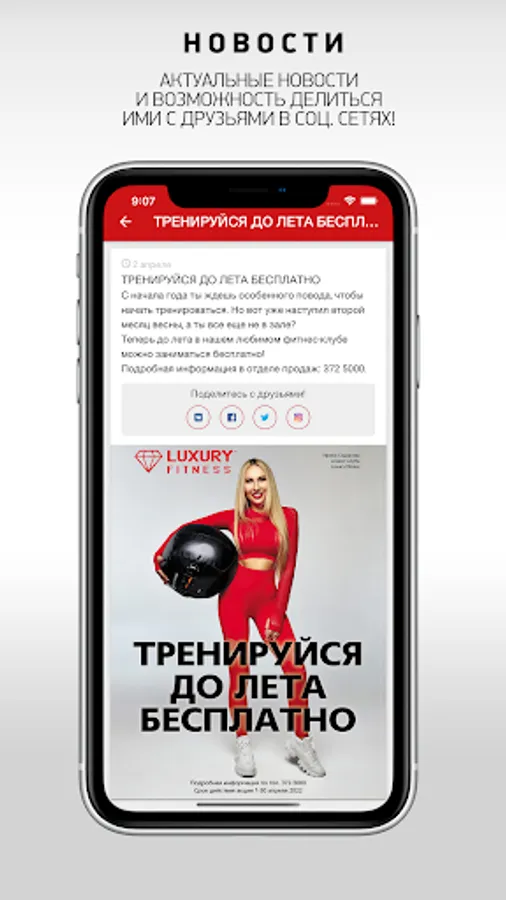 The application will allow you to keep abreast of the news of the "Luxury Fitness" fitness club, always have an up-to-date schedule of group classes with you. You will get the opportunity to write a review about the club, as well as view photo reports from events!