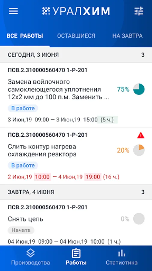 The mobile application is designed to organize the management of shutdown repairs at the enterprises of the Uralchem group.