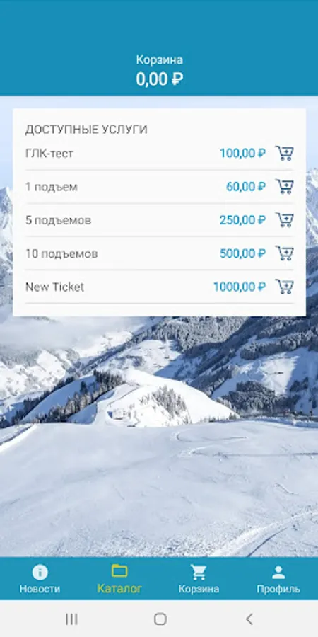 Bars for GLK - an introductory application with the ability to register, view a personal account, purchase test subscriptions, tickets, replenish a personal account for customers of ski resorts, which use the Bars payment and access system for automation