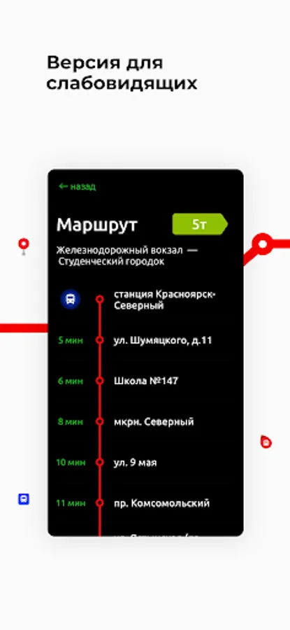 - use the mode for the visually impaired, as well as track low-floor vehicles for people with limited mobility.