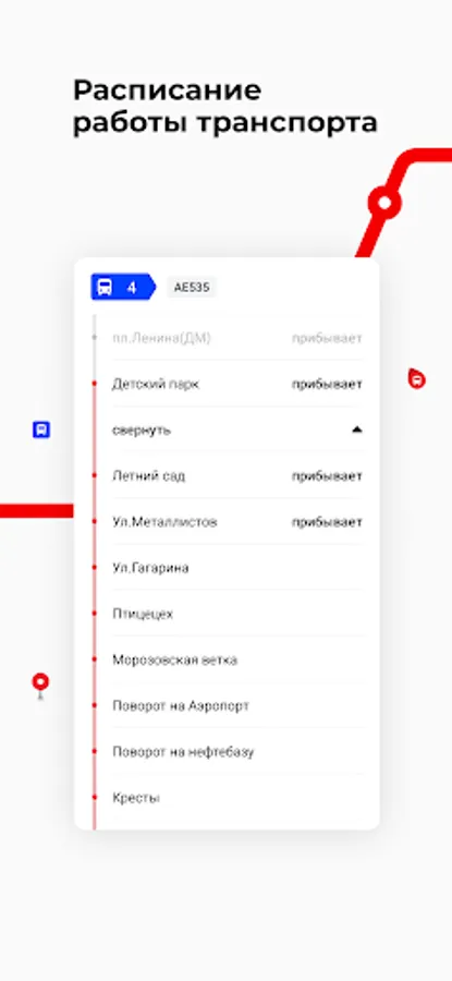 - Find out the schedule and forecast of arrival at the desired stop;