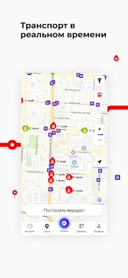 - If you find yourself in an unfamiliar area, the application will build a route for you, taking into account changes in vehicles.