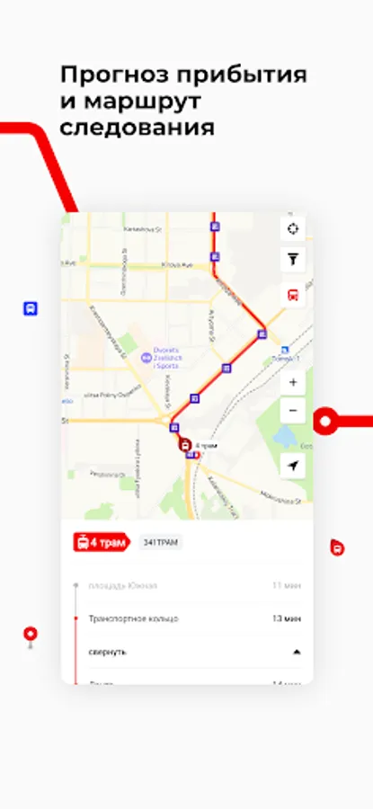- You will see the location and movement of public transport in real time, so you will know when to approach a stop.