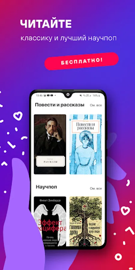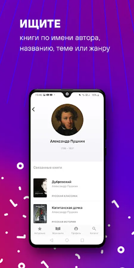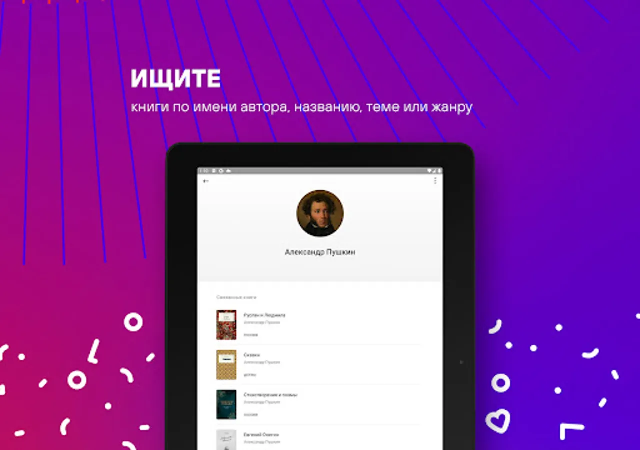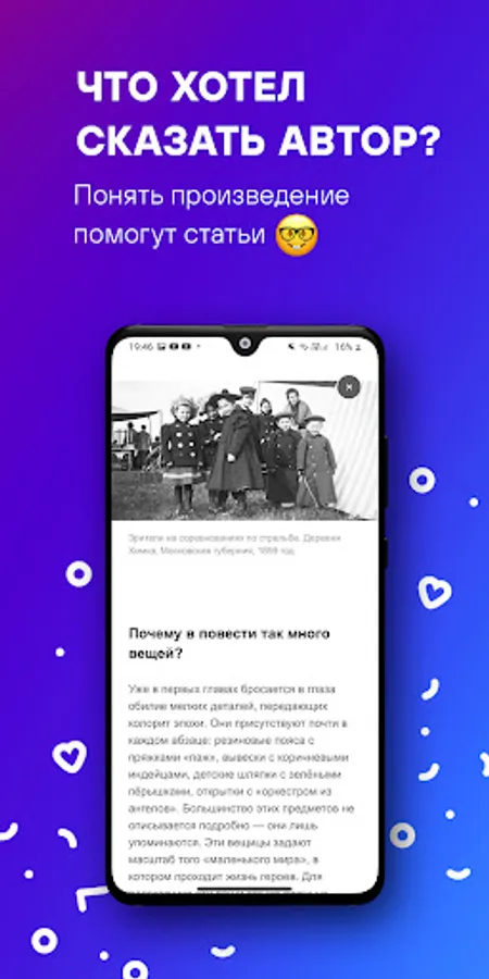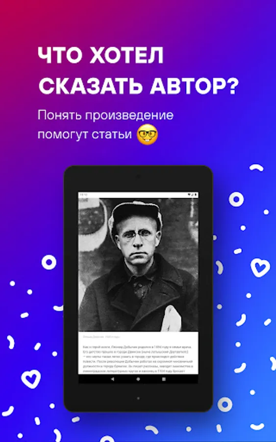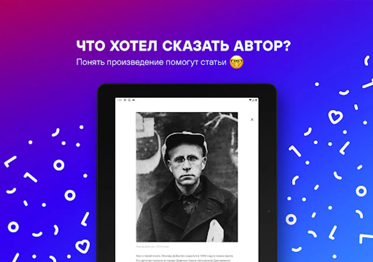 The works in the application accompany articles and stories. In these materials, experts from the Russian State Library talk in simple and accessible language about the works, the author's intention and give recommendations to readers.