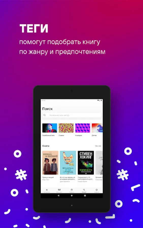 - You can search for books not only by title or author, but also by tags and recommended age, as well as by volume.