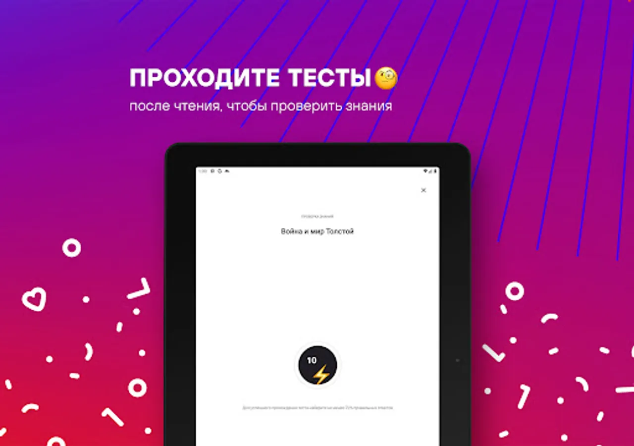 Read books online and offline, watch film adaptations, take tests, set records - for free, without registration and in-app purchases.