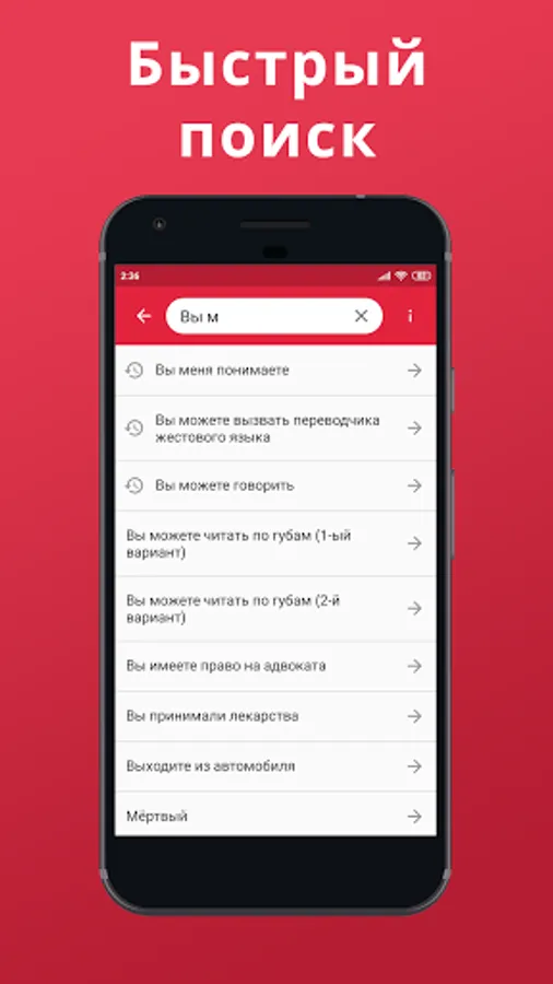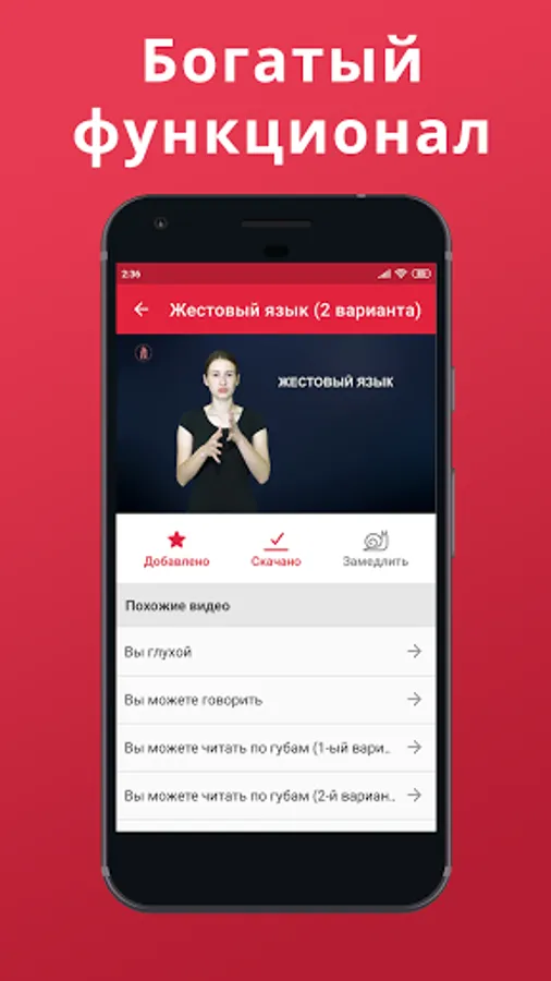 The video dictionary contains the dactyl alphabet, gestures and sign sentences, words needed to communicate with a deaf person in Russian. The words in the application are often used by employees of emergency services, ATC systems, traffic police, health care, and the Ministry of Emergencies.