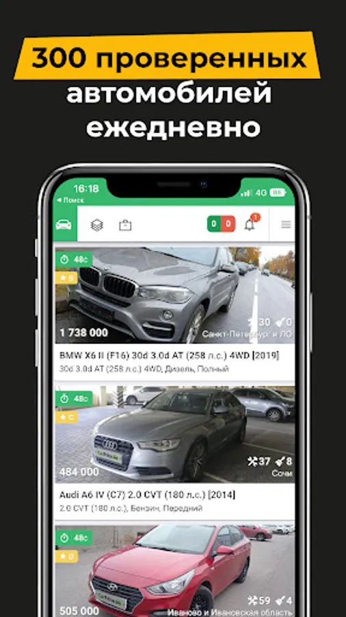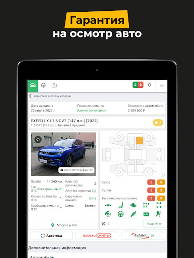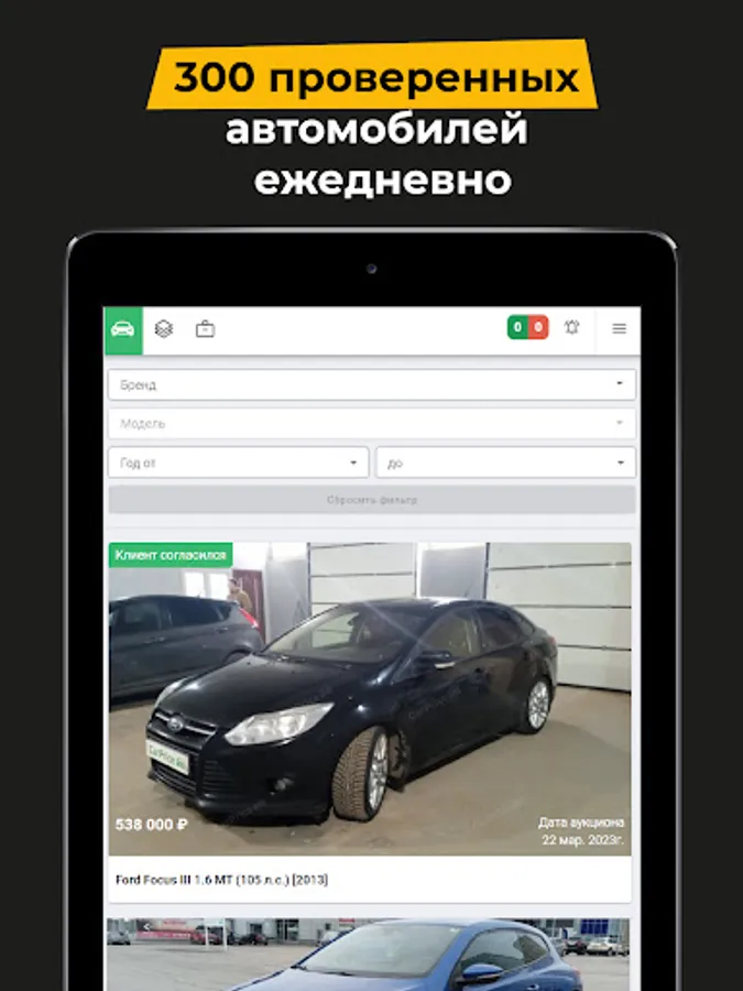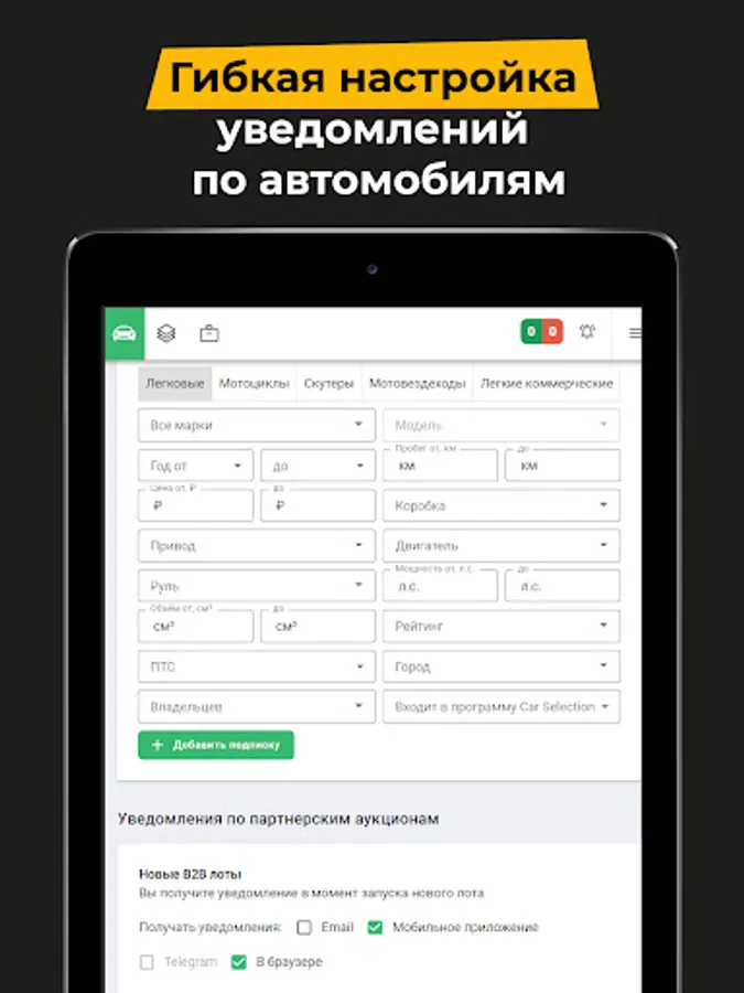 CarPrice Dealer allows dealers to view information about Carprice auction lots, set up notifications about the appearance of interesting lots, place bids, track the history and status of current bids.