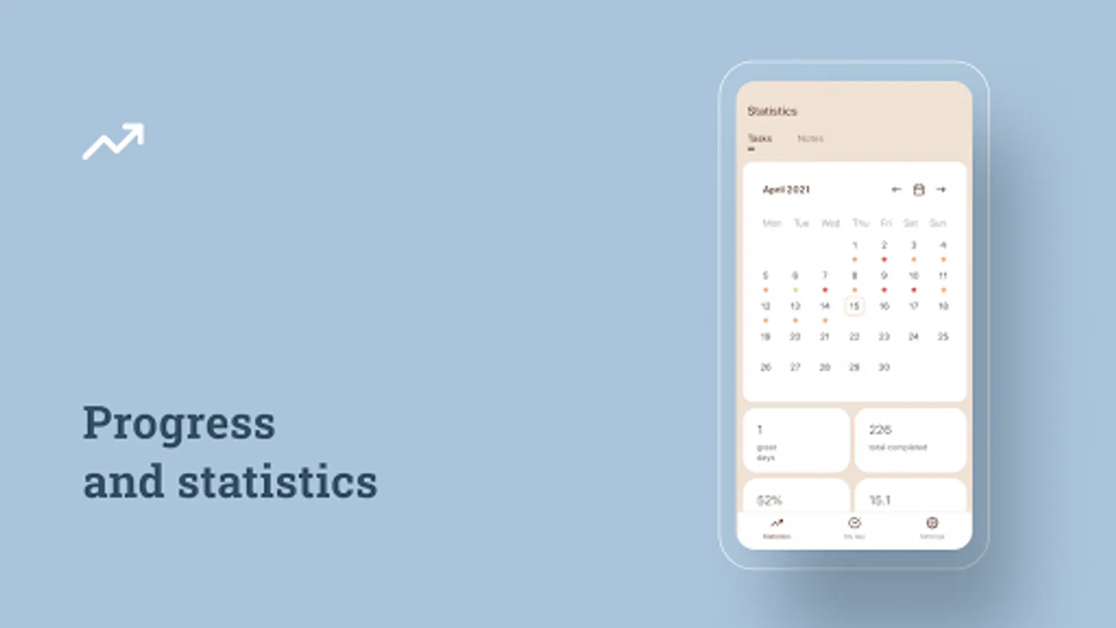 Track progress and task statistics and get inspired by it. What can better motivate your own success?