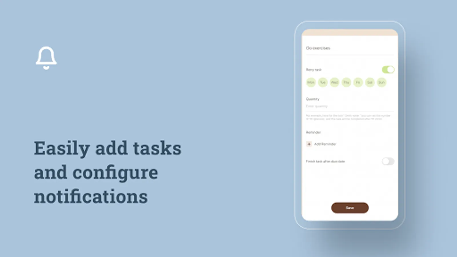 - Creation of multi-part tasks (for example, drink "8 glasses of water");