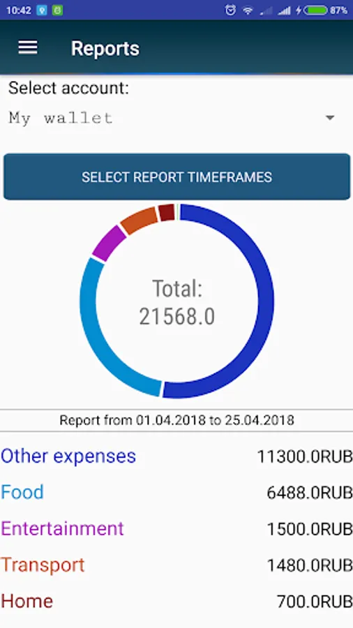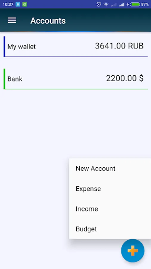 4. Budgets - with this function you can easily limit your expenses in a particular currency to a specific category for a certain period of time. Intervals of time are not tied to common standards (week, month, etc.), you ask yourself from which and for what number to keep the budget.