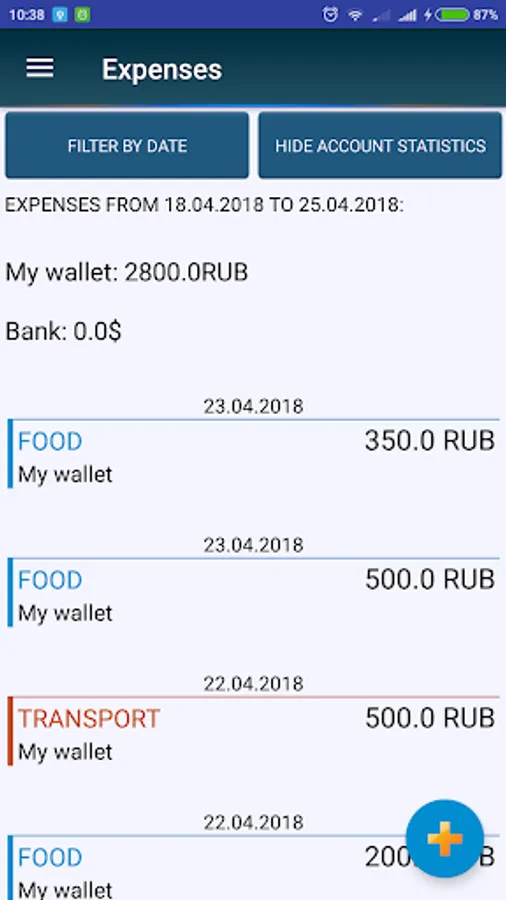 2. Expenses - write down your expenses, look through expenses by dates. Find out how much and from what account you spent at a certain time.