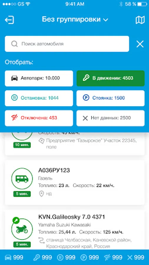 Using this application, you can not only monitor the fleet in real time from a tablet or smartphone, but also get a complete history of movement for the required period of time. "Delta" allows you to group vehicles by divisions, models and current status.