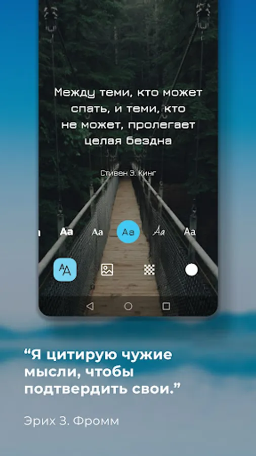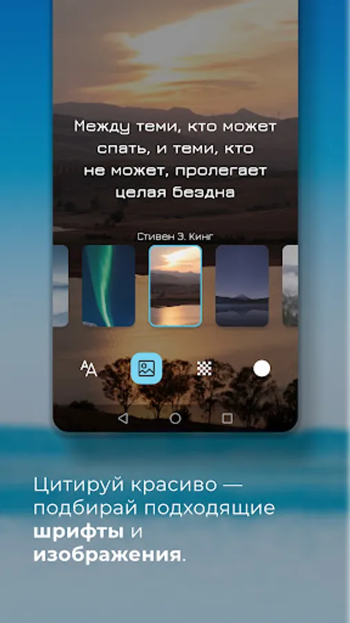 Lake is an application with more than 30 thousand quotes on any topic and mood, which become even more expressive thanks to a stunning design. Lake will allow you to get aesthetic and spiritual satisfaction; become wiser and discover new truths; pass the time to good use; beautifully share your thoughts and mood with others.