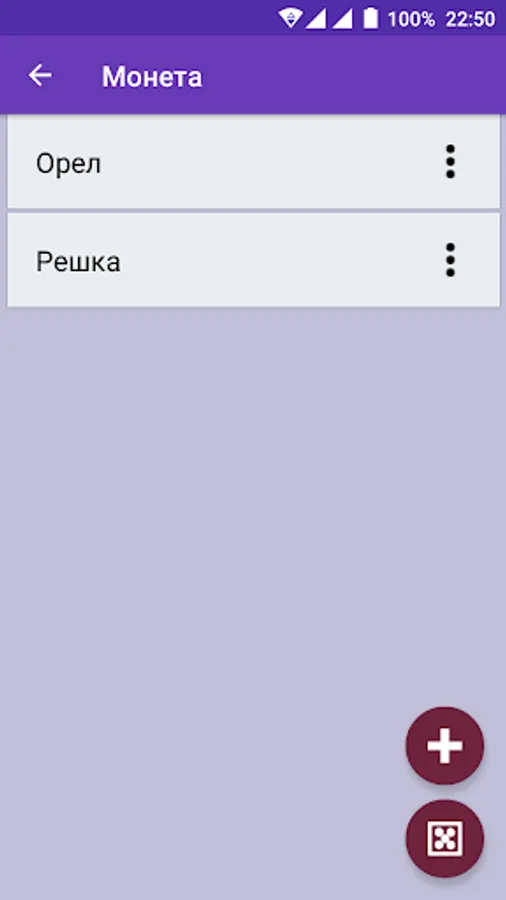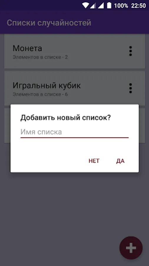 Random selection will probably be right, but maybe not, and this is also an accident. The application has the ability to create their own lists of random selection. And ready: dice and coins.