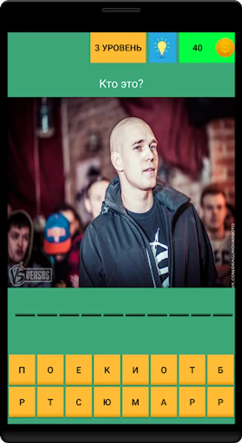 In this game you are given the opportunity to guess the participants of Battle - Rap sites like Versus, #SLOVOSPB, RBL, Slovo.