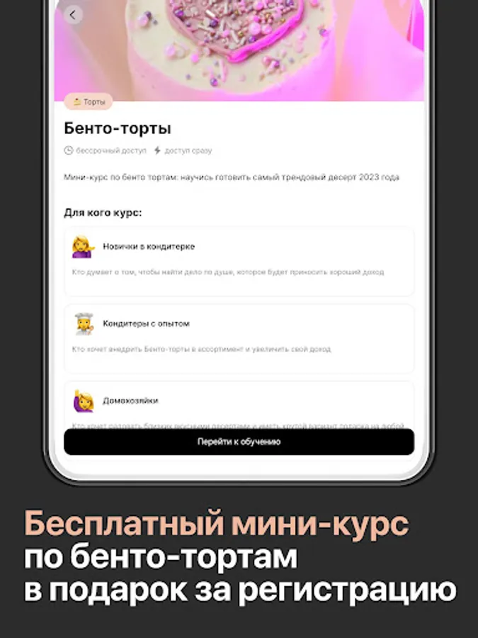 — Free mini-course on bento cakes: 2 frozen toppings, 7 decor options, podcasts about optimization, mistakes, theory.