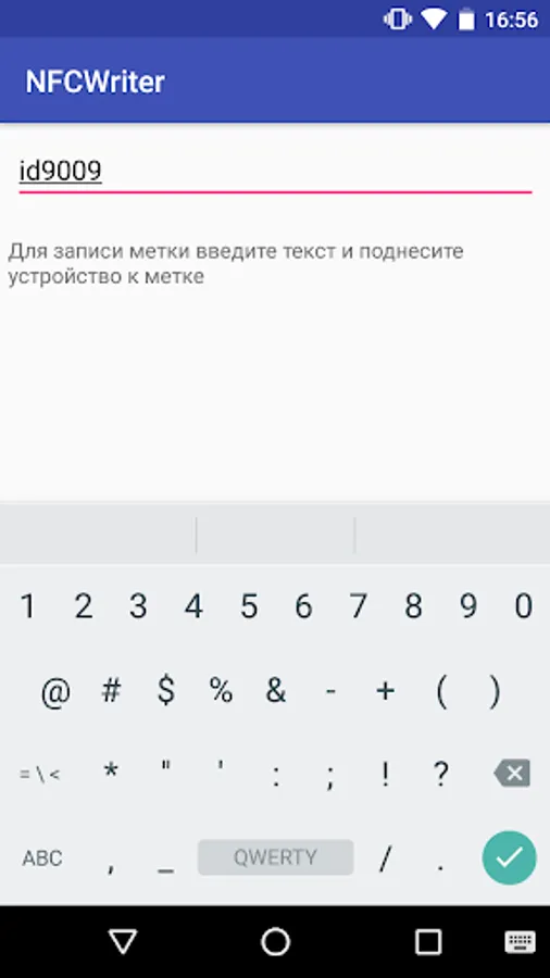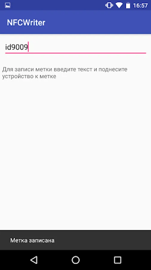 The application is designed to record on the NFC-tag text MIME-type application / dsnfcscanner.