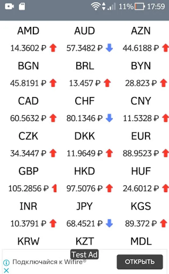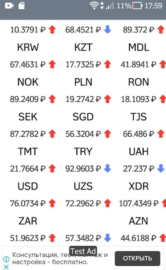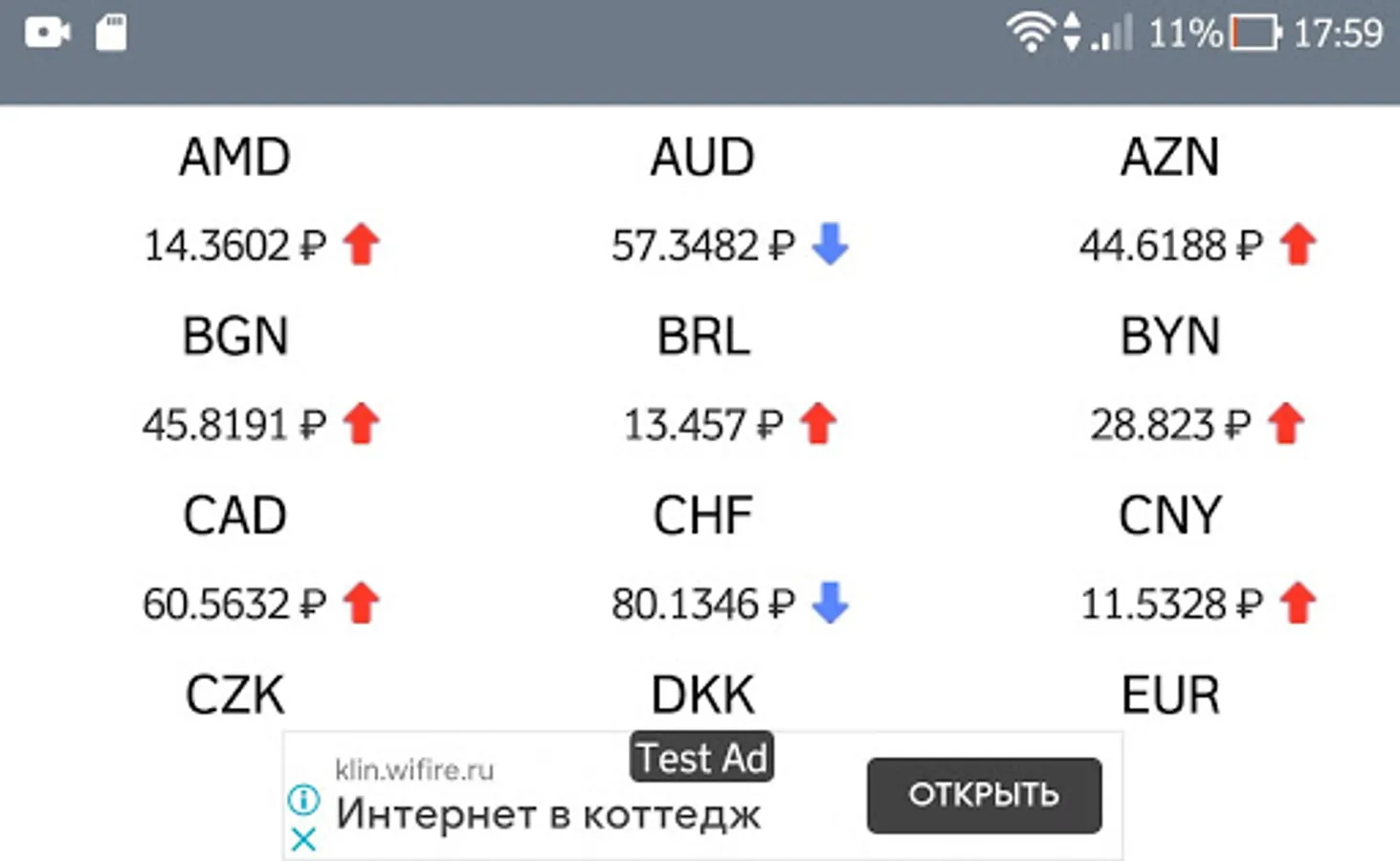 List of exchange rates of the Central Bank of the Russian Federation for today. The first version of the application.