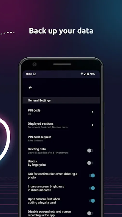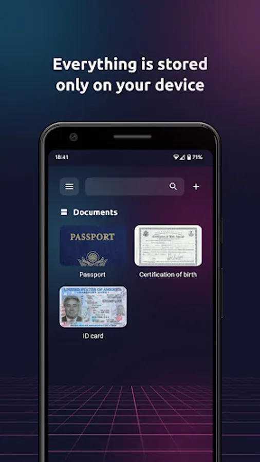 To transfer information to another device, use the backup function (the backup is encrypted according to the AES-256 standard using the PBKDF2 key generation standard). With its help, you can easily recover your data without loss. All data is stored in the device's memory in local storage, which can only be accessed by the current app.