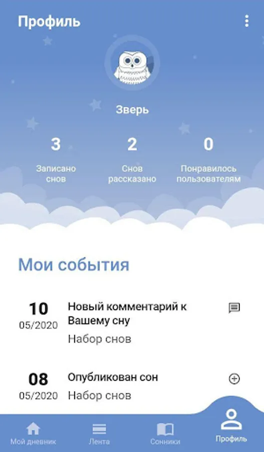 My dreams, this application allows you to keep a dream diary, watch the interpretation of sleep, share them with other people. You can see what users see in a dream, evaluate and comment on their dreams. Together, we will call this a network of dreams.