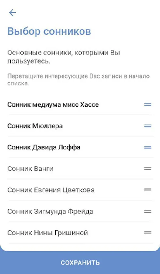 3. The choice of preferred dream books.
