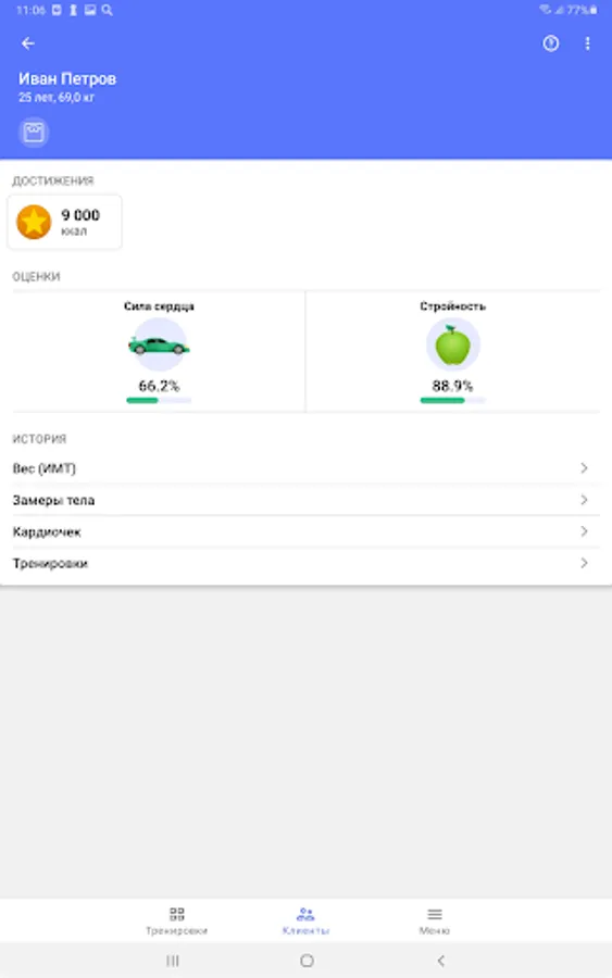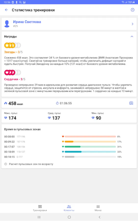 Monitoring of workouts in fitness centers and fitness studios, which allows you to manage client workouts in real time, track heart rate and calories burned.