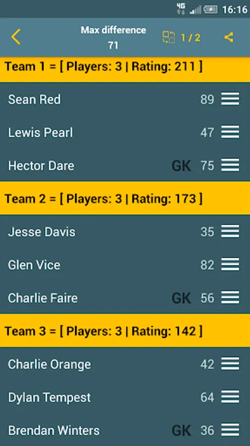 App help you to find the best balanced team, based on the ranking of players.