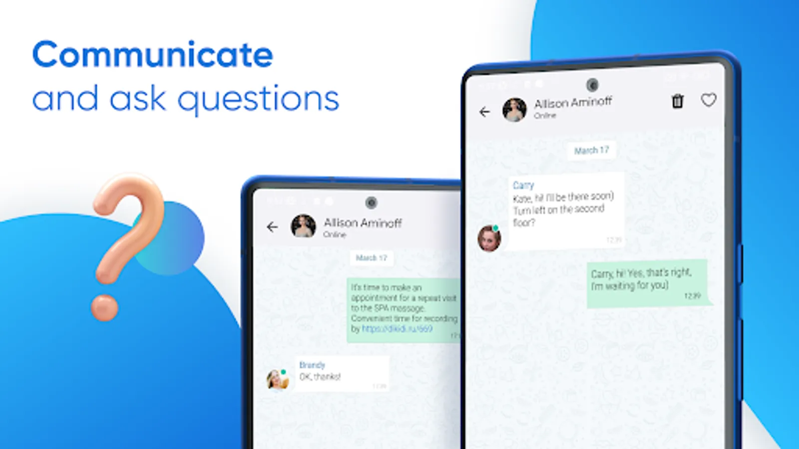 Communicate via chat with a company or a specialist before, during and after your appointment.