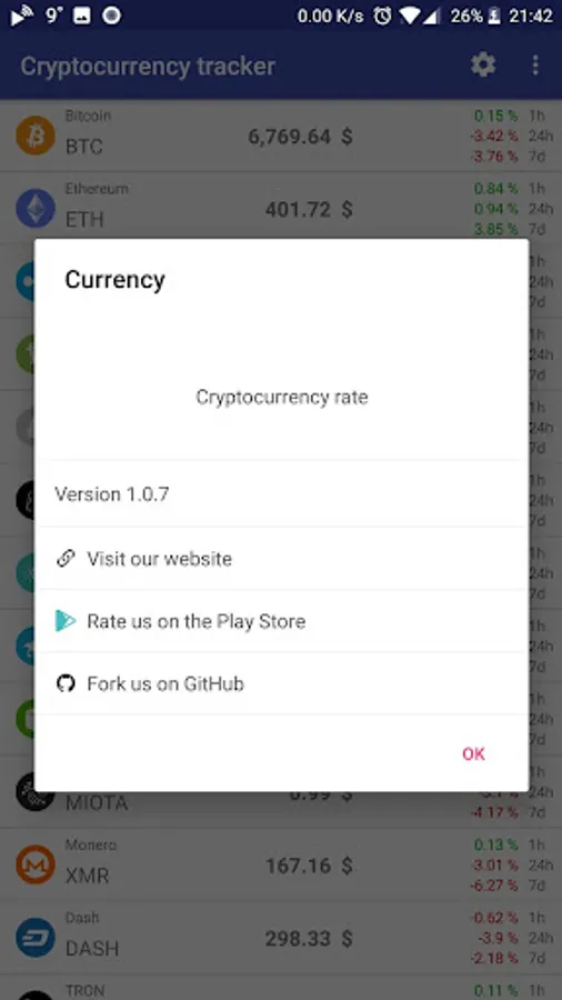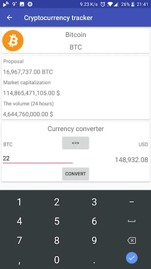 This is an app for monitoring the exchange rate and converting cryptocurrencies