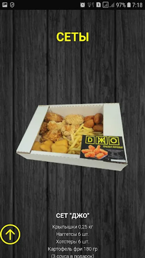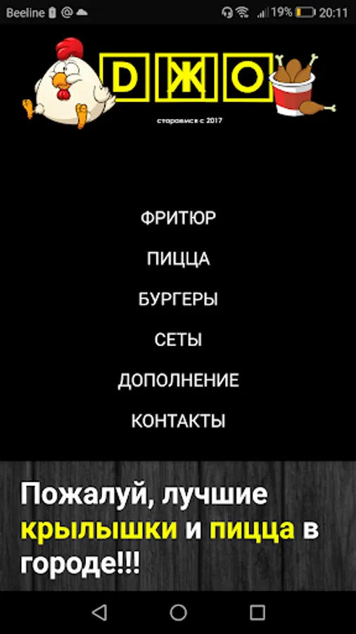 Through the app you can always order branded Joe chicken wings, pizza, burgers, french fries, nuggets, pasties, hot dogs, onion rings, kruggetse, various sets and much more.