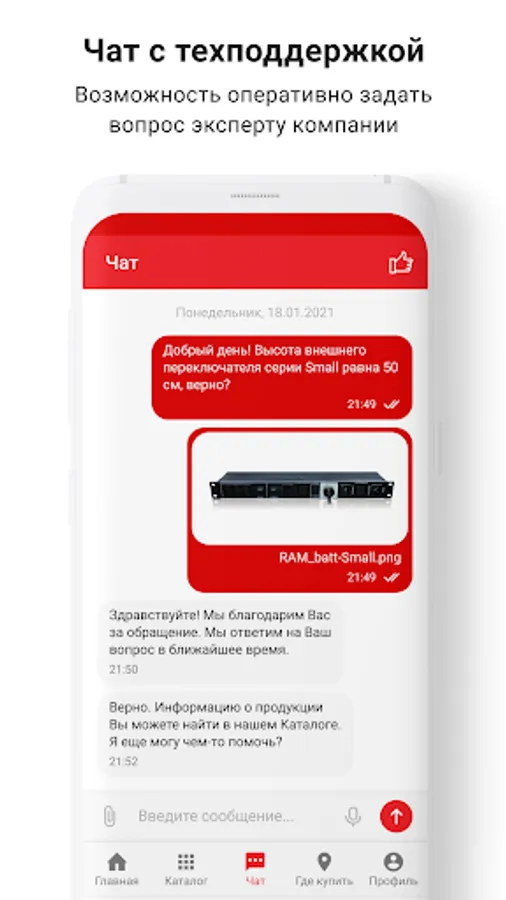 Chat. Online chat with technical support specialists. Write messages, send files, photos and videos, use voice messaging.