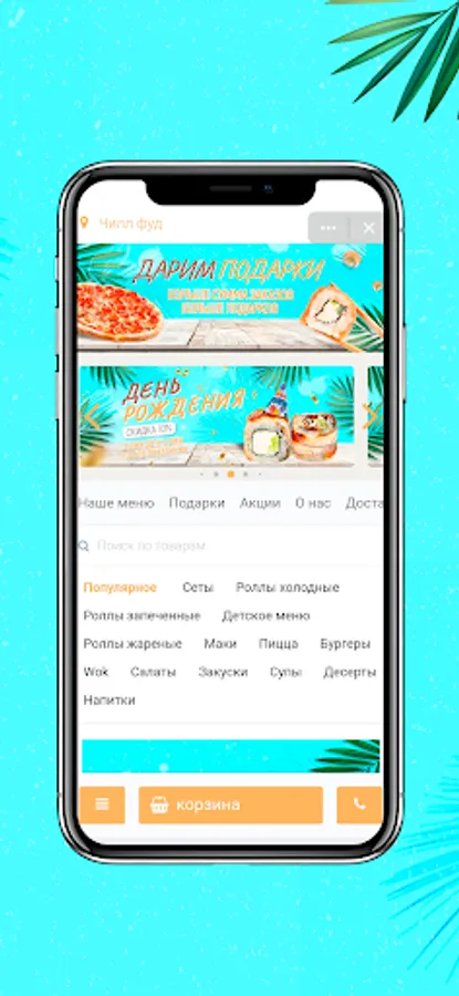 Thinking about tasty treats? Our courier is already flying to you! Choose the delivery of rolls and pizza to a convenient place using our application
