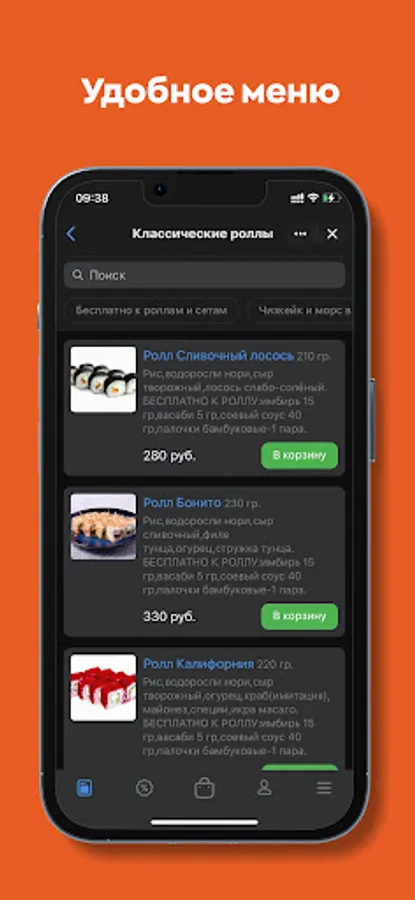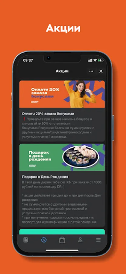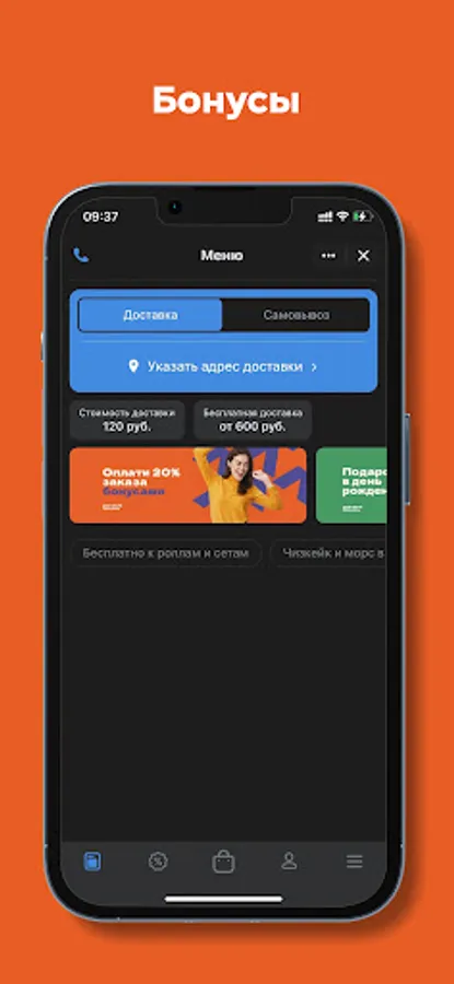 Always at hand, in the application - order history, our promotions. We will remember your delivery addresses, re-issuing will be even easier and faster!